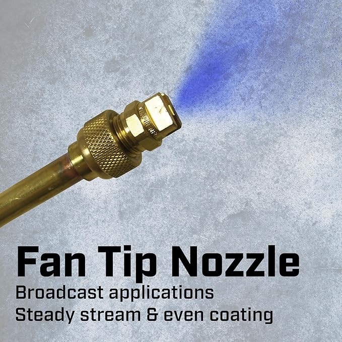- COMPONENTS: chemical-resistant brass fan-tip nozzle, 18-inch brass spray wand, and brass lock-on shut-off valve; 36-inch reinforced hose