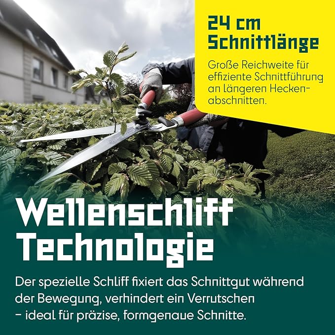 BERGER Professional Hedge Shear, Self-Sharpening 9.45" Steel Blades, Chrome-Plated Wavy Blades, 2 Sap Grooves to Prevent Sticking, Wood Handles, 4590