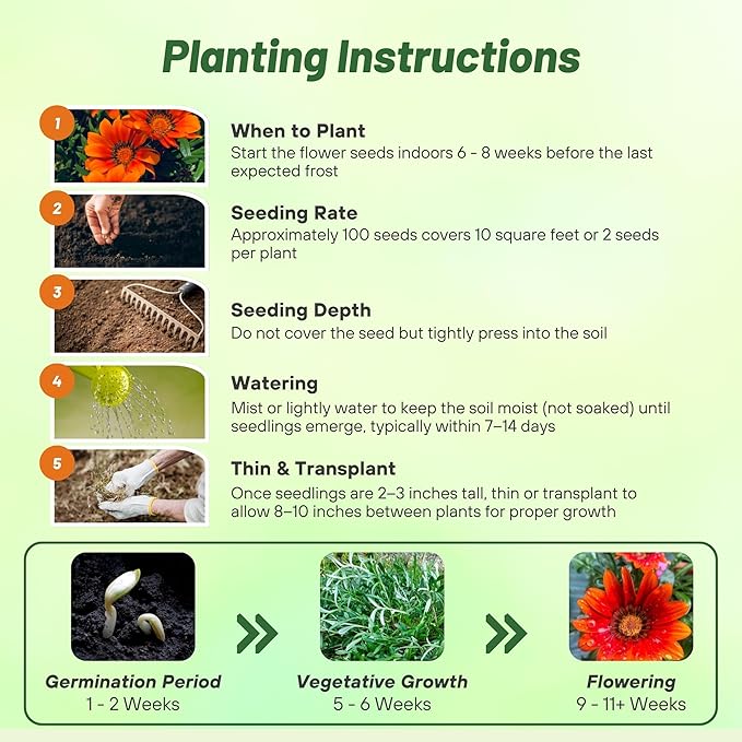- DROUGHT-TOLERANT & EASY TO GROW: Our Gazania New Day Bronze is a drought tolerant flower seeds that grows in full sun, offering a continuous display of color that brightens your garden all season long, requiring minimal water once established. It makes them great for hot regions.