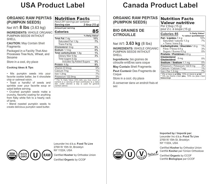 Food to Live Organic Raw Pepitas, 8 Pounds — Non-GMO, Pumpkin Seed Kernels, Unsalted, No Oil, No Shell, Vegan, Kosher, Bulk. Keto Snack.