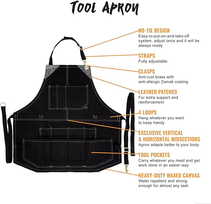 - PERFECT FOR EVERY OCCASION – Professional apron with utility pockets, cool apron style for carpenter, mechanic, tool, bladesmith, blacksmith, knifesmith, brewer, plumber, welder, machinists, repair, painting, outdoors, barbecue, carpentry, woodwork, work shop, studio, farm, garden, bbq, brewery, grilling, wood working, brewering, foraging, gardening, metal working, forging, welding, carpenting, sculpting, mens, womens, pro apron, aprons for men and women, uniform, bib.