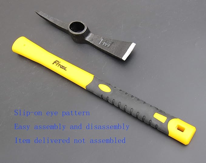 - Strong and Comfort Rubberized Fiberglass Handle. Slip-on eye pattern for easy assembly and disassembly