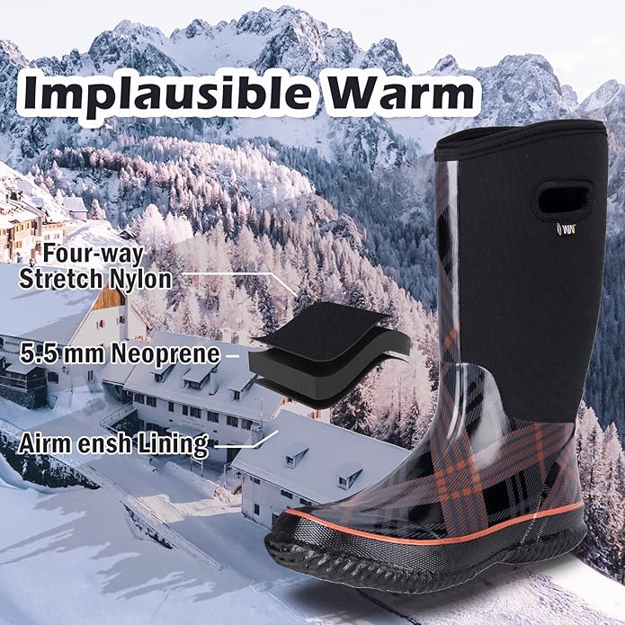 - 【All-Season Warmth & Comfort】 The 5.5mm thick neoprene insulation provides exceptional warmth and flexibility in cold weather, while the cushioned insole offers all-day comfort for standing, whether gardening, commuting, working, hunting, camping, fishing, dog-walking, or exploring outside. WINTER PROTECTION (up to -5° F/-15°C)
