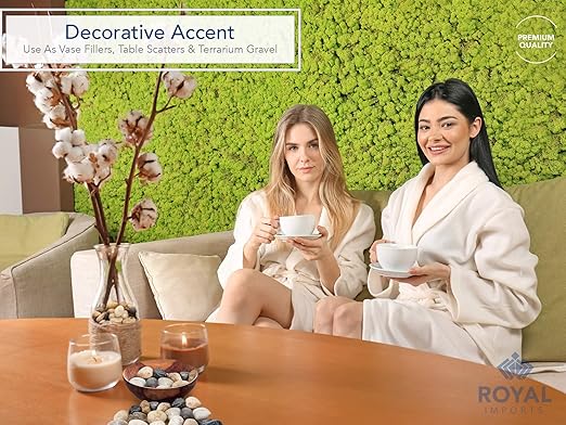 - NATURAL STONES- These high quality natural stones by Royal imports are non-toxic and eco-friendly river rocks. Their natural attribute will make them last longer because they will not deteriorate like mulch does. Common applications include flowerbeds, groundcover, decorative concrete topping, or walkway paving. Decorative rocks are a permanent and cost-effective alternative to annual wood mulching.