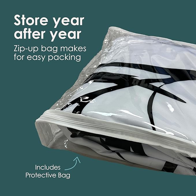 - Easy Installation: First, measure your garage door before ordering to ensure it’s the same size as this product. To install, simply wrap the banner’s corners around your garage door and secure them with the included hook-and-loop fasteners. A storage bag is included for convenient use in future seasons.