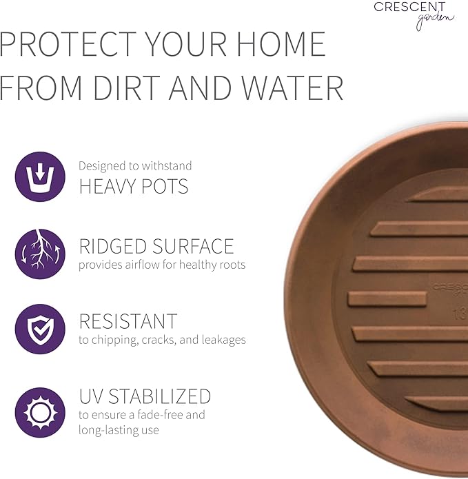 - BUILT TO LAST: Saucer Exterior dimensions are 25.5” x 25.5” x 2.38”, this large plant tray is backed with a 10-year limited warranty.