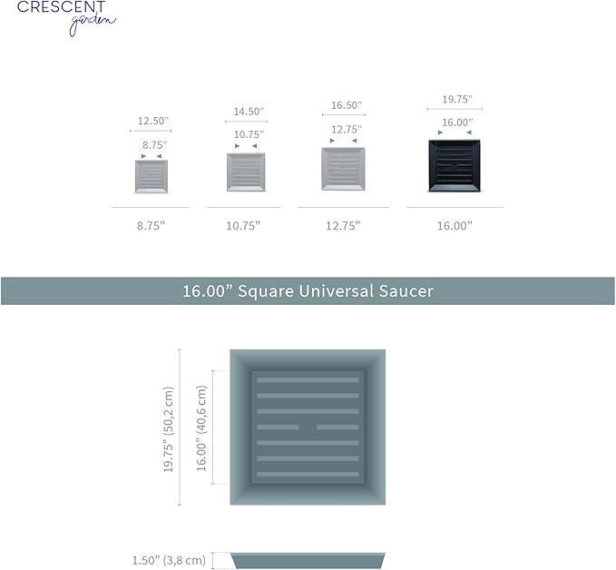 - UNIVERSAL: This shallow basin plate will add beauty and protection to a variety of planter styles. This size is ideal for planters with base size: 16” x 16”