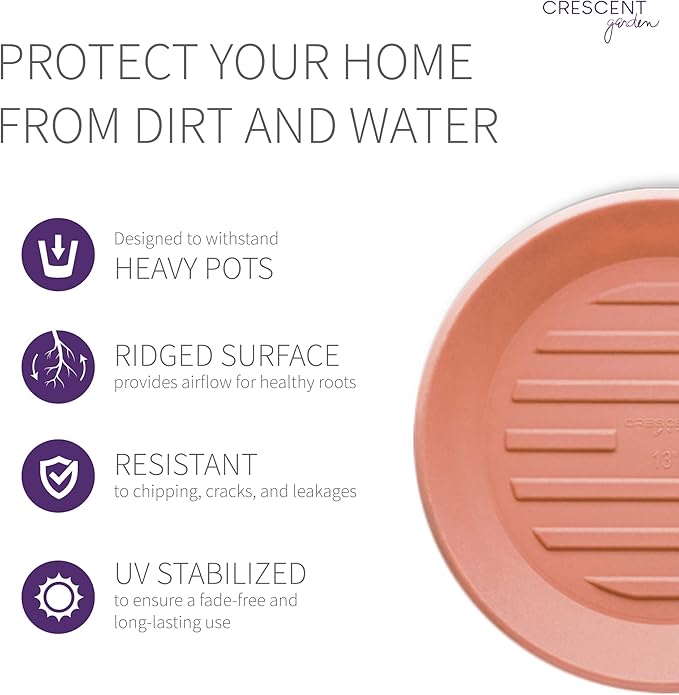 - BUILT TO LAST: Saucer Exterior dimensions are 22” x 22” x 2.38”, this large plant tray is backed with a 10-year limited warranty.