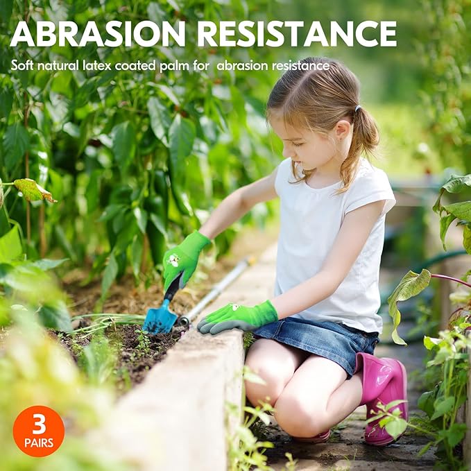Vgo 3-Pairs Age 5-7 Kids Gardening Gloves, Children Yard Work Gloves, Soft Safety Rubber Gloves (XXS, KID-RB6013)
