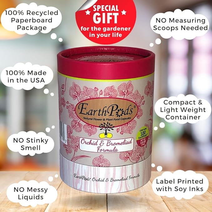 - NO MESSY LIQUIDS / NO CONFUSING MEASURING SPOONS / NO STINKY SMELL — 1 tube = 100 concentrated EarthPods (a 4-year supply for a single special Orchid or use on big collection of Orchids, Bromeliads & Air Plants)