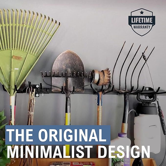 - Includes 6 Garage Storage Hooks – Includes 4 large (12" x 2") and 2 small (6" x 2") tool racks for garage walls. Hang ladder hooks, garage hooks, rakes, gardening forks, mattocks, pole hole diggers, and more. This garden tool organizer wall mount offers flexible, space-saving storage for all your garage needs.