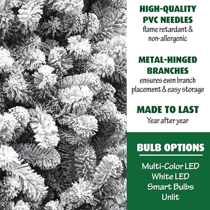 - Lightly Flocked: Our premium, fade-resistant flocking material gives the appearance of freshly fallen snow and the full and dense lifelike tips create the appearance of a traditional cut tree