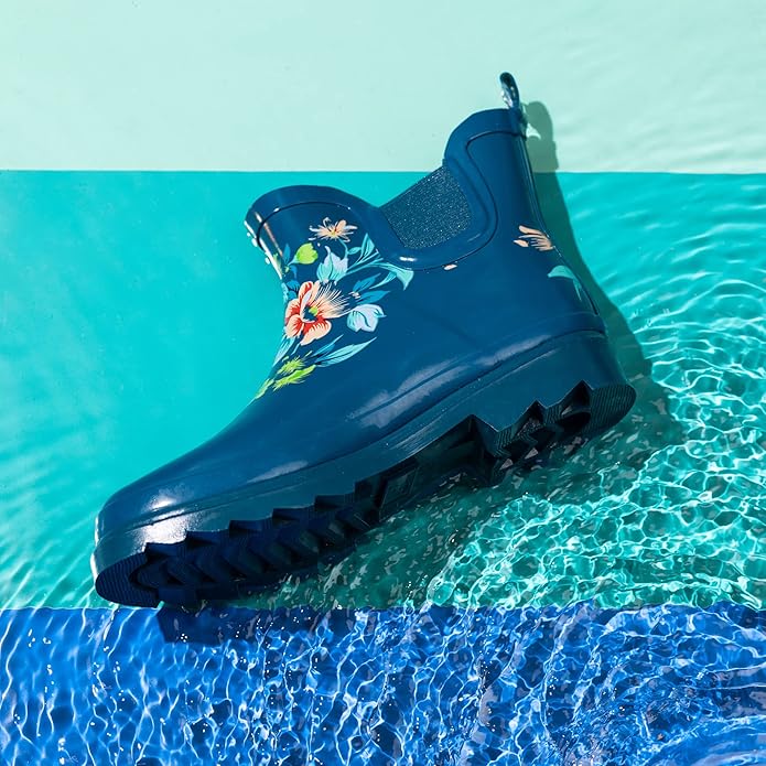 - NATURAL RUBBER CONSTRUCTION: When the wetness tries to sneak in, our cute rain shoes shut it out with a highly water-resistant, built-to-last design. They also have a rugged, chunky, and deep tread to keep you steady in slippery conditions.