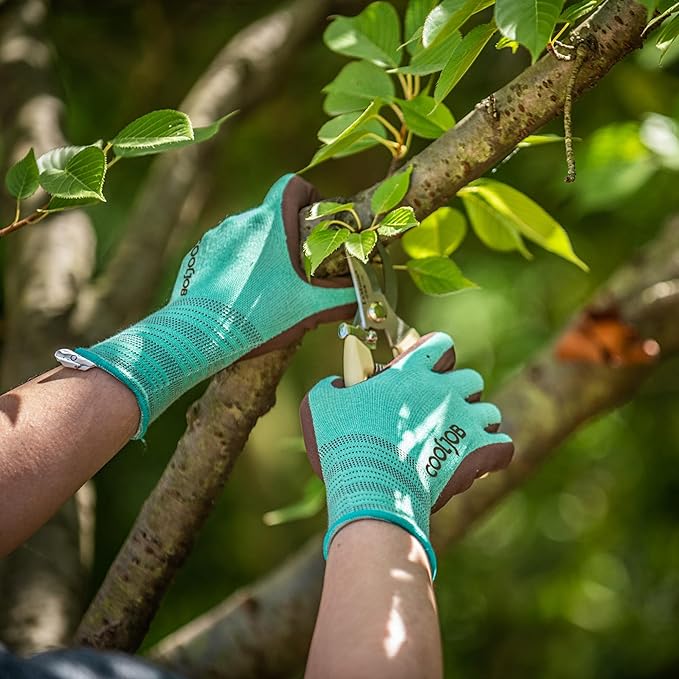 COOLJOB 2 Pairs Breathable Gardening Gloves for Women Large, Stretch Soft Modal Base with Non Slip Rubber Coating, Palm Dipped Grip Work for Gardener Worker in Lawn Yard Factory Garden