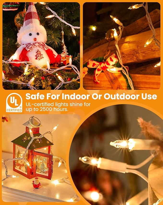 - Premium & Safe: The incandescent mini Christmas lights are made of high-quality material and superb craftsmanship, built-in fuses, universal UL listed certification, can be used safely, perfect for Christmas tree, indoor, outdoor, party decoration