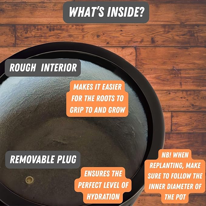 - PERFECT LEVEL OF HYDRATION – These black plant pots have a convenient drainage hole to allow excess water to flow out. The pots also come with a plug that you can easily remove and attach, offering the plants a perfect level of hydration.