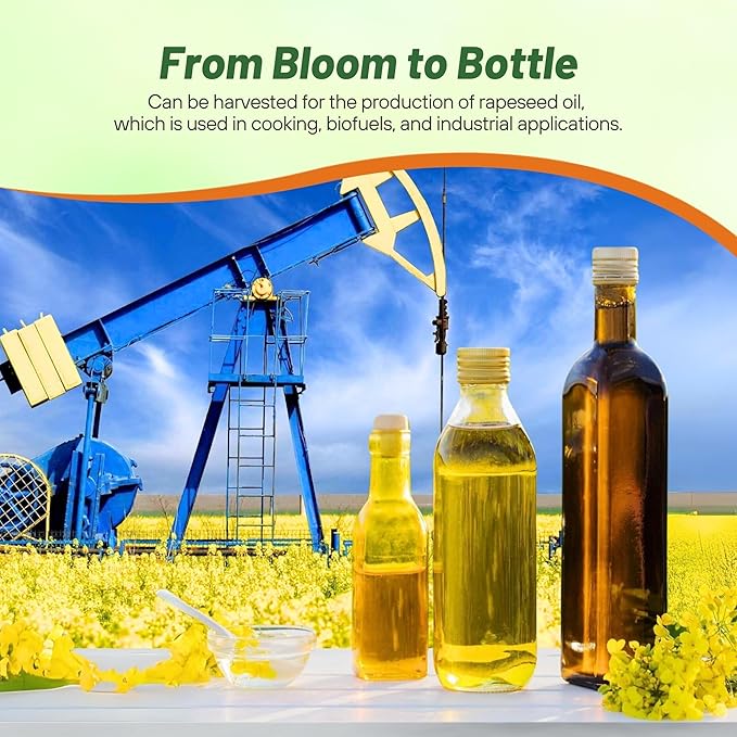 - SOIL IMPROVEMENT: Trophy Rapeseed's deep tap roots break soil compaction and scavenge nutrients from deep within the soil. It establishes quickly, suppressing unwanted plant growth, reducing soil erosion, and producing large biomass, which enriches the soil as green manure. Ideal as a cover crop, it contributes to soil health and productivity, complementing other seeds like clover and alfalfa.