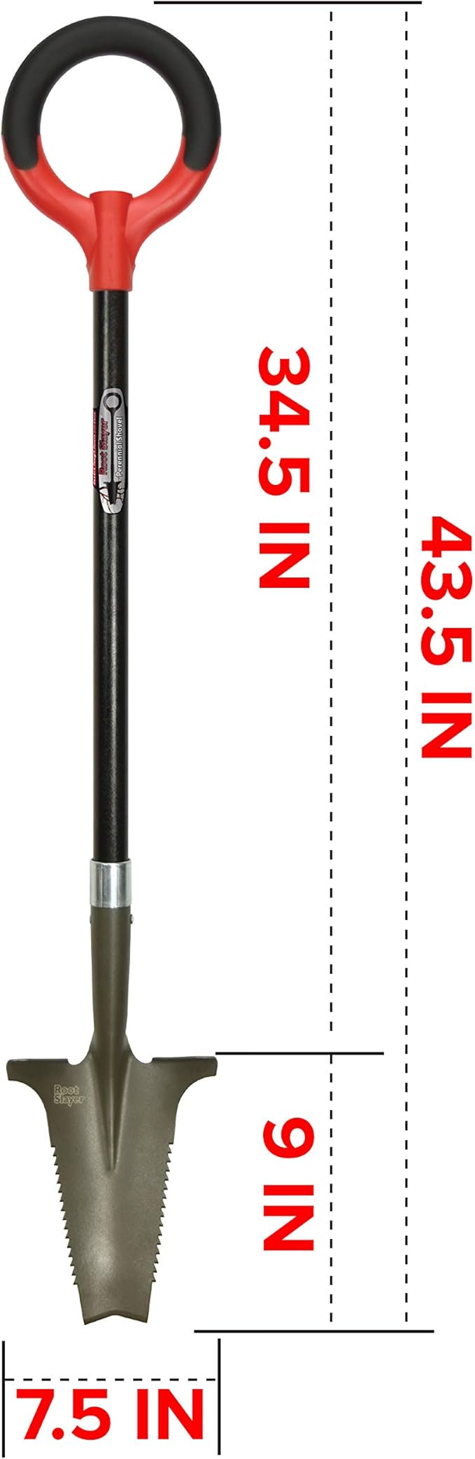 - Root slayer transplanting and multi-purpose shovel digs through sod and roots like they’re not there, with its “Inverted V” cutting blade tip and specially designed root-cutting rip Saw teeth, eliminating the need for saws, hatchets, pry-bars, and more