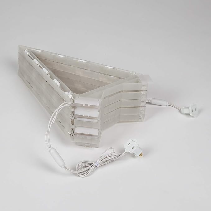 - [ 32” STAR DECORATION with COOL WHITE NON-TWINKLE LED LIGHTS ] 32-inch folding star decoration lit with 50 cool white steady LED lights. 42-inch power cord with fused stackable male plug and 5-inch tail with female plug for end to end connections.