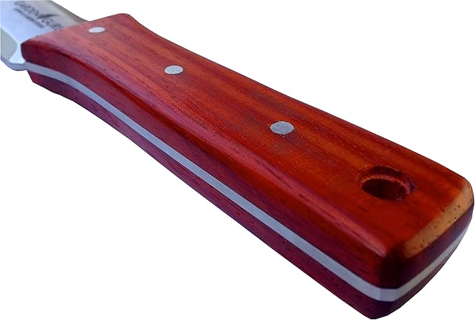 - COMFORTABLE WOOD HANDLE: Comfortable tropical Rose Hardwood handle offers incredible grip is decay resistant and accents this elegant knife perfectly. This soil knife is a necessary addition to your bonsai tools or add it to your cool camping gear.