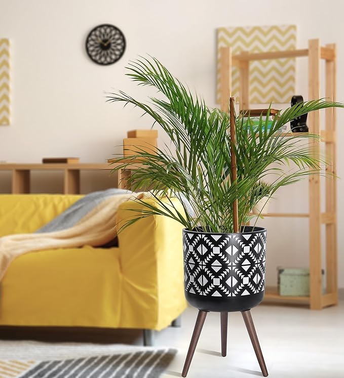 - Sophisticated Design: Mid-century modern aesthetic with a geometric fiberclay pot, complemented by solid wooden legs.