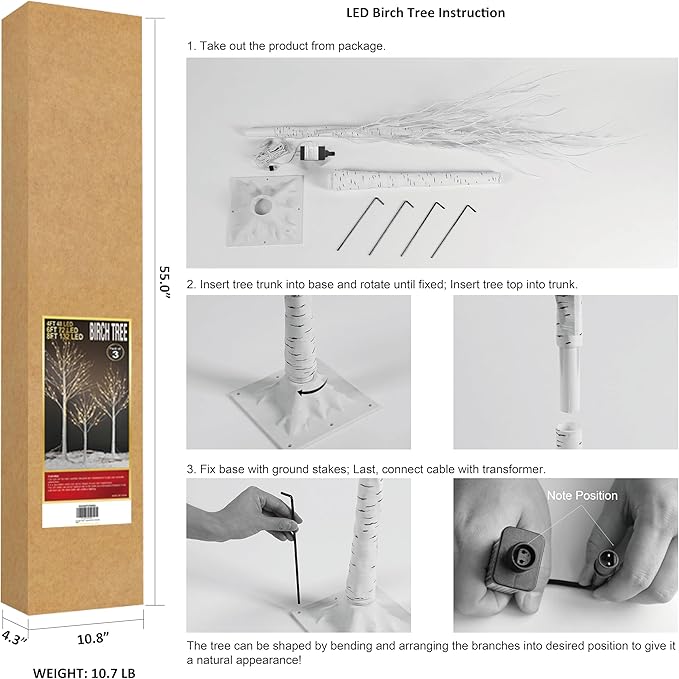 - [CHRISTMAS TREE DECORATION] Includes 4 ground stakes for outdoor stability. Perfect for garden lighting, wedding decor, holiday parties and home display.