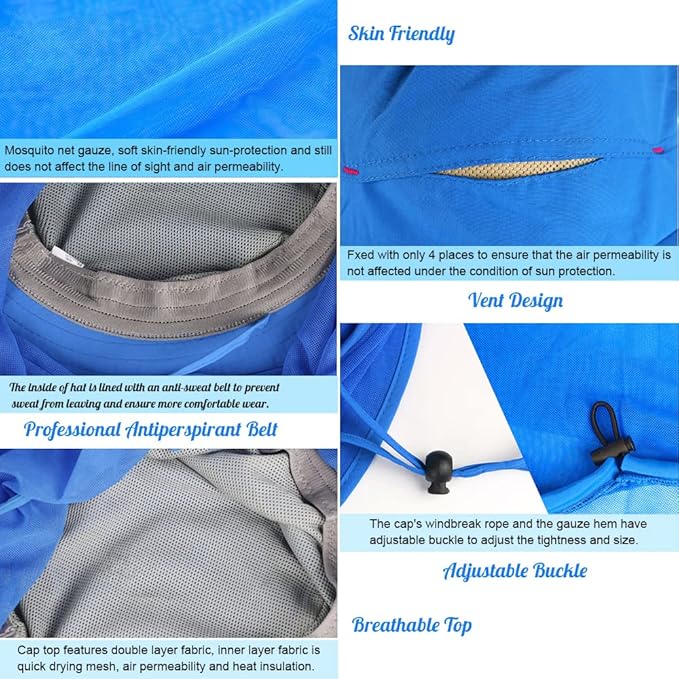 - SUN PROTECTION - Our sun protection adventure sun hat fishing hats are featured a 360° all-dimensional brim, which will provide the optimal protection against the sun and effectively protects your skin from sunburn. While ensuring sun protection, the lining mesh hygroscopic and sweatband offer you a comfortable, breathable, ventilated, quicky dry, cool feeling in hot summer or stuffiness spring.