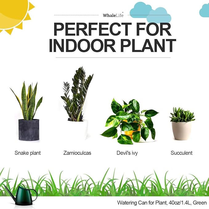 WhaleLife Indoor Watering Can for House Bonsai Plants (1.4L, Green)