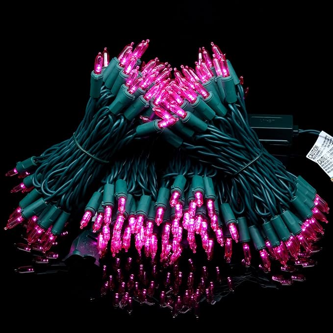 YULETIME 200 Count Pink LED Christmas Lights, 66 Feet Green Wire UL Certified Commercial Grade Holiday String Light Set (Pink)