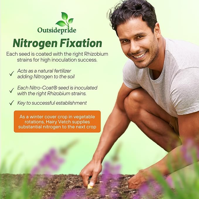 - HIGH NITROGEN FIXATION & WINTER HARDINESS: Outsidepride Hairy Vetch Cover Crop Seed enhances soil fertility and crop yields with high nitrogen fixation. Its winter hardiness ensures year-round soil coverage and protection, making it ideal for various climates. They are suitable as cover crop seeds, garden seeds, and ground cover seed.