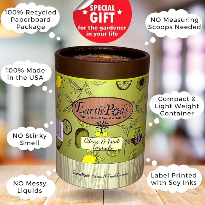 - NO MESSY LIQUIDS / NO CONFUSING MEASURING SPOONS / NO STINKY SMELL — 1 tube = 100 concentrated EarthPods (a 4-year supply for a single special Meyers lemon tree or use on big collection of potted dwarf fruit plants)