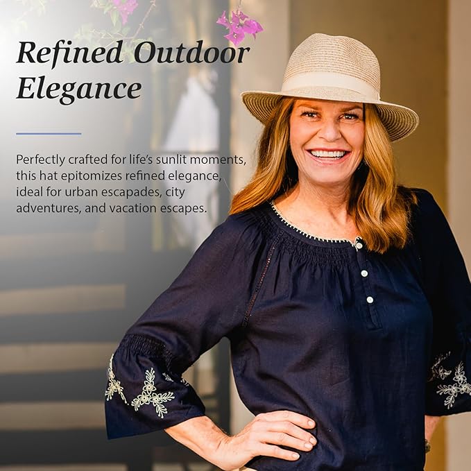 - PREMIUM QUALITY AND EASY CARE: Made from 100% Flexi-weave (exclusive of trim), this women's fedora hat features a classic shape, combining durability with timeless style. Maintaining its like-new appearance is effortless, making it perfect for any outside activity. Simply spot clean to keep it looking fresh and ensure A like-new appearance for years to come.