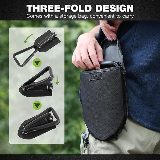 - Portable Design: This camping shovel has a 3-fold design and comes with a storage bag. Weighing just 2.5lbs, it is convenient to carry and ideal for outdoor activities.
