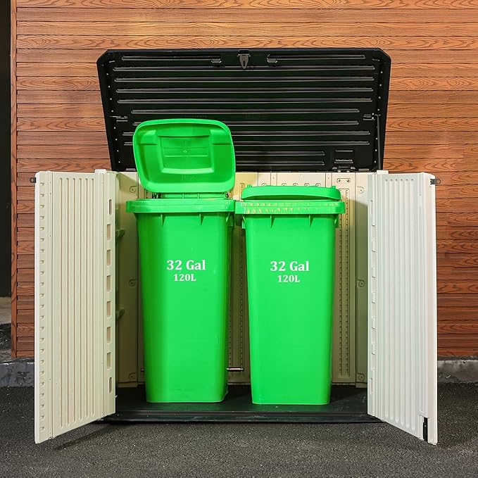 - 【Multi-purpose Storage】 Perfect for storing garden tools, BBQ grills, firewood, seat cushions, and two - small trash cans, patio & garden accessories and more.
