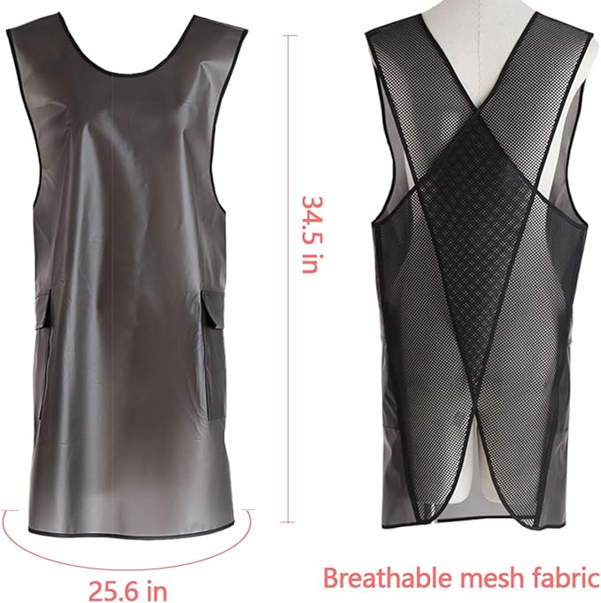 - CROSS BACK DESIGN: Cross-back design, no ties, easy to put on and take off. The back strap is made of mesh fabric, which makes this apron very breathable and sweat-wicking, especially suitable for wearing in summer