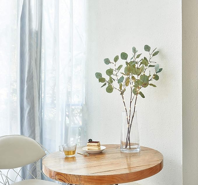 LITBLOOM Lighted Eucalyptus Branches 24IN 36 LED with Timer Battery Operated Lit Artificial Greenery for Wedding Party Home Spring Decoration Indoor Outdoor