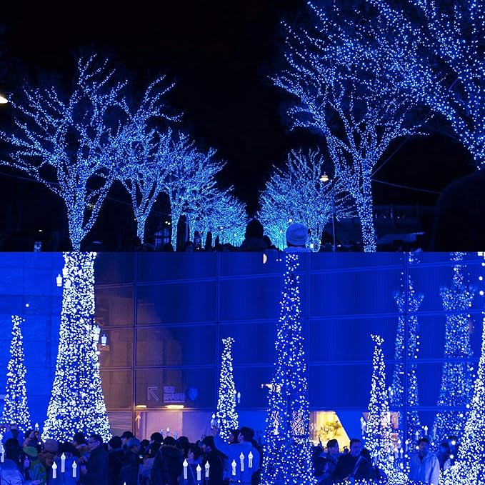 - 98.5ft Christmas Decorations string lights: With 300 Blue individual LED bulbs. Each lights has end-to-end connection, you can connect up to 4 sets together to illuminate a wider range.