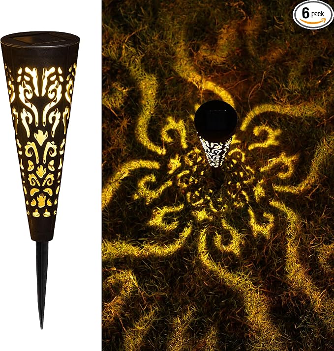 Go2garden 6Pcs Solar Lights Outdoor Garden Decor Gifts for Women Mom,Waterproof Conical Garden Stakes for Yard, Lawn, Pathway,Garden Lights Mothers' Day Birthday Gifts for Men(Black)