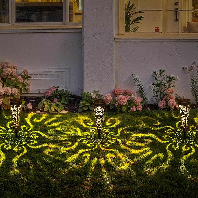 - Wonderful Design: The pathway lights solar powered comes with Fire/Flame Totem hollow design, cast a stunning pattern and add whimsical accent to your place. Fire symbolizes passion, energy, and vitality. It represents the intense drive and determination of individuals to pursue their dreams and goals. Fire is seen as a symbol of strength and resilience in the face of adversity. It represents the ability to rise from the ashes, overcome challenges, and rebuild.