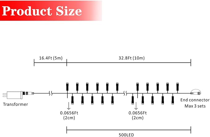 - Large Number of Lights: Contains 500 LED lights for a bright and festive display.