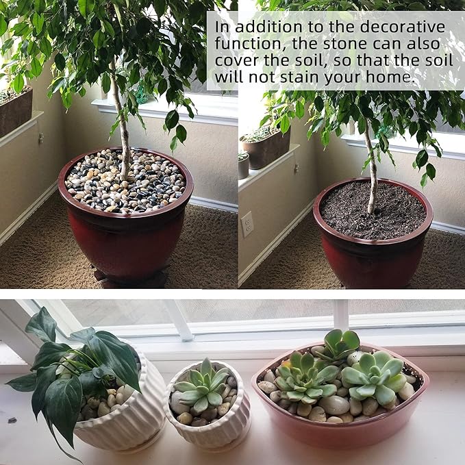 - 🌼【WIDE USES】Common applications include flowerbeds, groundcover, decorative concrete topping, or walkway paving. Decorative stones are a permanent and cost-effective alternative to annual wood mulching.It could also be used as an accent to aquariums, water gardens, ponds, and terrariums.
