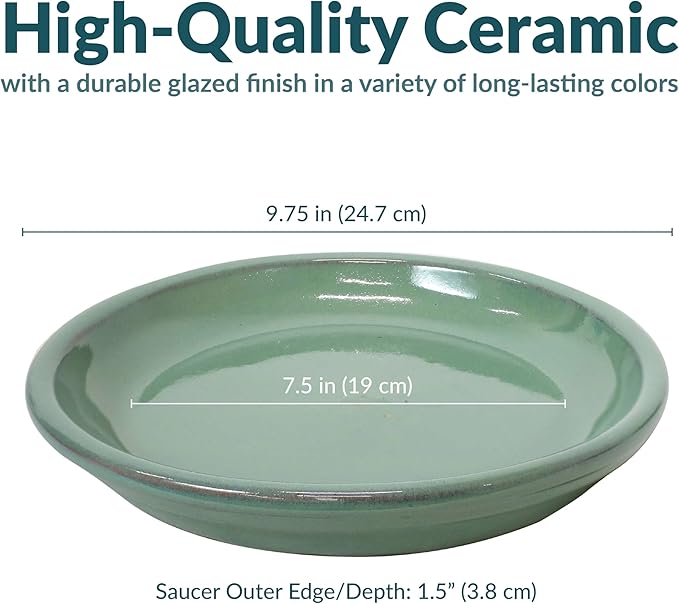 - DESIGNED FOR BEAUTY AND STRENGTH: These ceramic plant dishes are hand-painted with a rich, glazed finish and placed in a kiln for classic, shining beauty. Please note, variations in color may occur due to manual glazing and the unique kiln firing process. The glazed finish also protects the saucer in most weather conditions for lasting use.