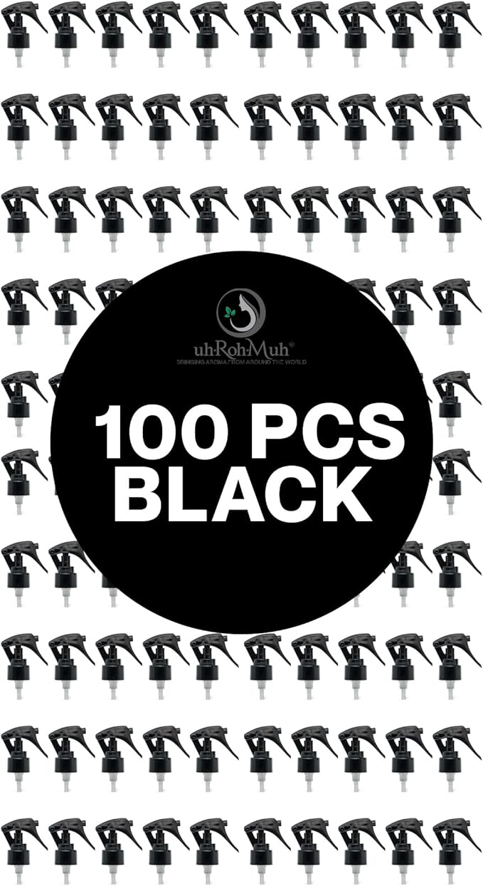 uh*Roh*Muh 24/410 Mini Trigger Sprayer (Pack of 100) Black - Smooth Skirt Design, Easy Fit, Adjustable Spray Nozzle - Perfect for DIY, Home, and Garden Use