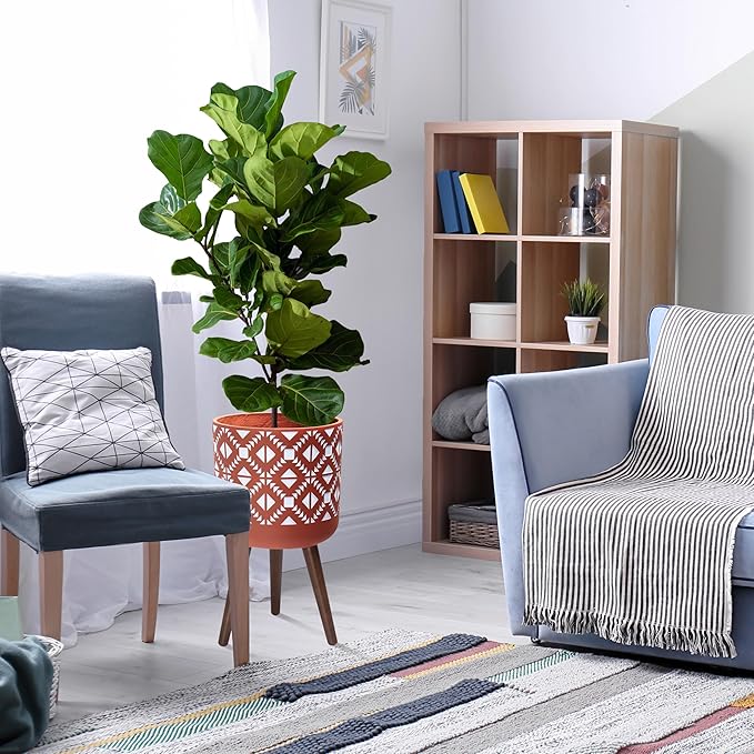 - Sophisticated Design: Mid-century modern aesthetic with a geometric fiberclay pot, complemented by solid wooden legs.