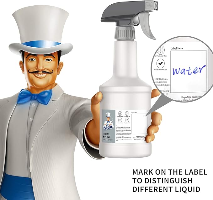 - REUSABLE & LONG LASTING: Our spray bottle is manufactured with premium quality, it is durable, hygienic, non-toxic and reusable. Features measurements on the bottle which make it easier to see how much contents remain inside. The 16 oz capacity holds enough liquid to complete your job without carrying around a larger heavier bottle. Mark on the label of spray bottle to distinguish different liquid.