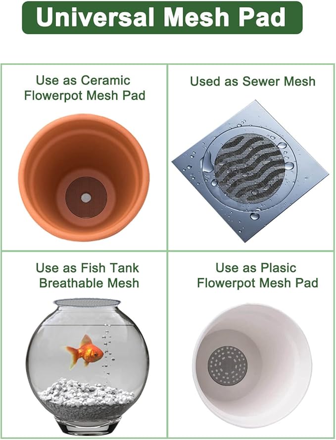- 【Universal Mesh Pad】The plant breathable gasket is apply to most plants, flower, bonsai and more. Plant hole screens can help bonsai drain water and provide a good growing environment for plants. Not only that, the plant net gasket can also be used as a sewer plug, fish tank breathable mesh, etc