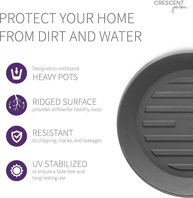 Crescent Garden Universal Round Planter Saucer, Durable Drainage Dish for Plant Pots, Heavy-Duty Plant Dishes Saucer, Indoor & Outdoor Plant Trays - Slate (15.5 inch Inner, 20 inch Outer Diameter)