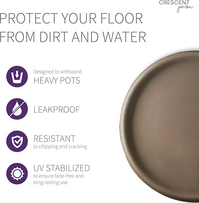 - BUILT TO LAST: Saucer Exterior dimensions are 25.5” x 25.5” x 2.38”, this large plant tray is backed with a 10-year limited warranty.