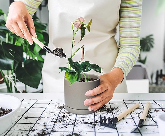 - X-Small 4.6 Inch Planter Pot: 4.6" Diameter x 4.5" H, grey color. Potting Soil Needed: 0.2 gallons / 0.8 qt.