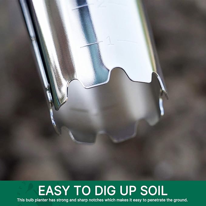 - WIDE APPLICATION - The depth marked bulb planter makes it an ideal tool for planting bulbs in spring, autumn and all year round, such as tulips, daffodils, lilies, day lily, saffron, scallions, dahlias, iris, gladiolus, onions, as well as hole diggers for plants, bulk flowers and perennial bulbs.